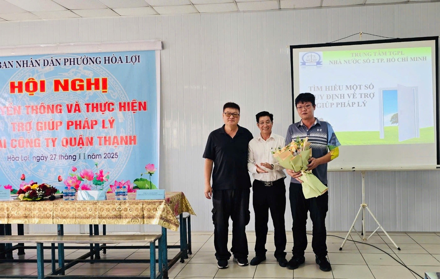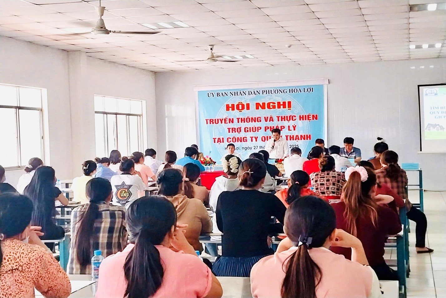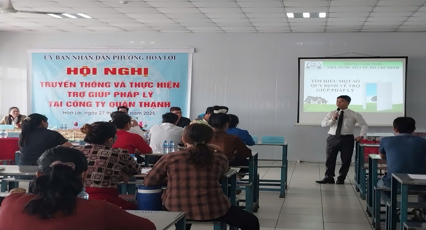 Thực hiện Kế hoạch số 2337/KH-STP-PBGDPL của Sở Tư pháp TP. Hồ Chí Minh, Trung tâm Trợ giúp pháp lý Nhà nước Số 2 phối hợp với UBND phường Hòa Lợi tổ chức Hội nghị truyền thông trợ giúp pháp lý cho người lao động Công ty TNHH Quận Thạnh, nhằm giúp người lao động tiếp cận thuận lợi hơn với hoạt động trợ giúp pháp lý và tăng cường kiến thức pháp luật cần thiết.