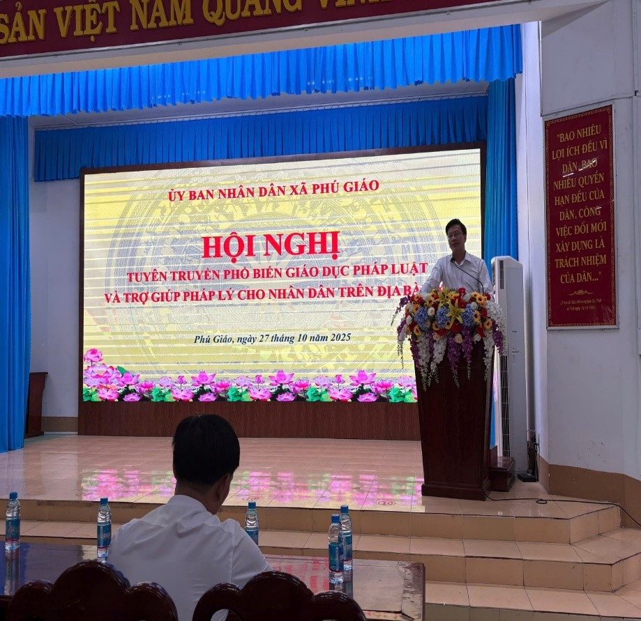 Sáng 27/10/2025, Trung tâm TGPL Nhà nước số 2 Thành phố Hồ Chí Minh đã phối hợp với UBND xã Phú Giáo đã tổ chức thành công Hội nghị tuyên truyền, phổ biến giáo dục pháp luật và trợ giúp pháp lý cho nhân dân trên địa bàn. Hội nghị thu hút gần gần 200 đại biểu là cán bộ, hội viên các tổ chức chính trị – xã hội, tổ viên các tổ hòa giải tại cơ sở cùng đông đảo người dân sống trên địa bàn xã tham dự.