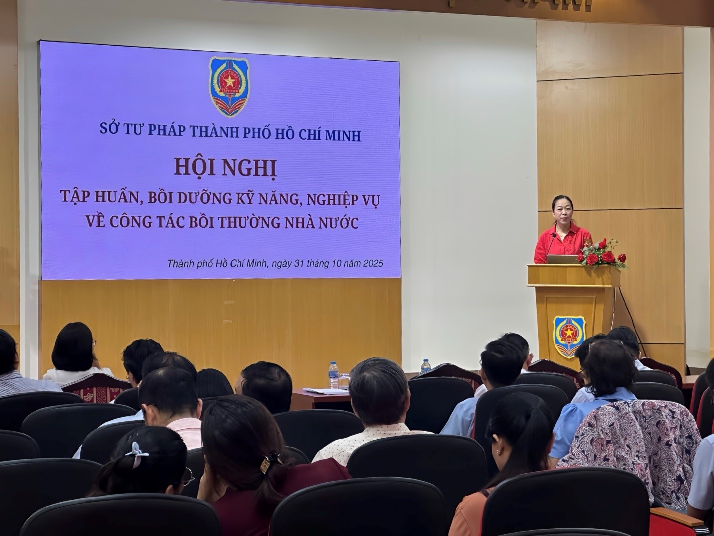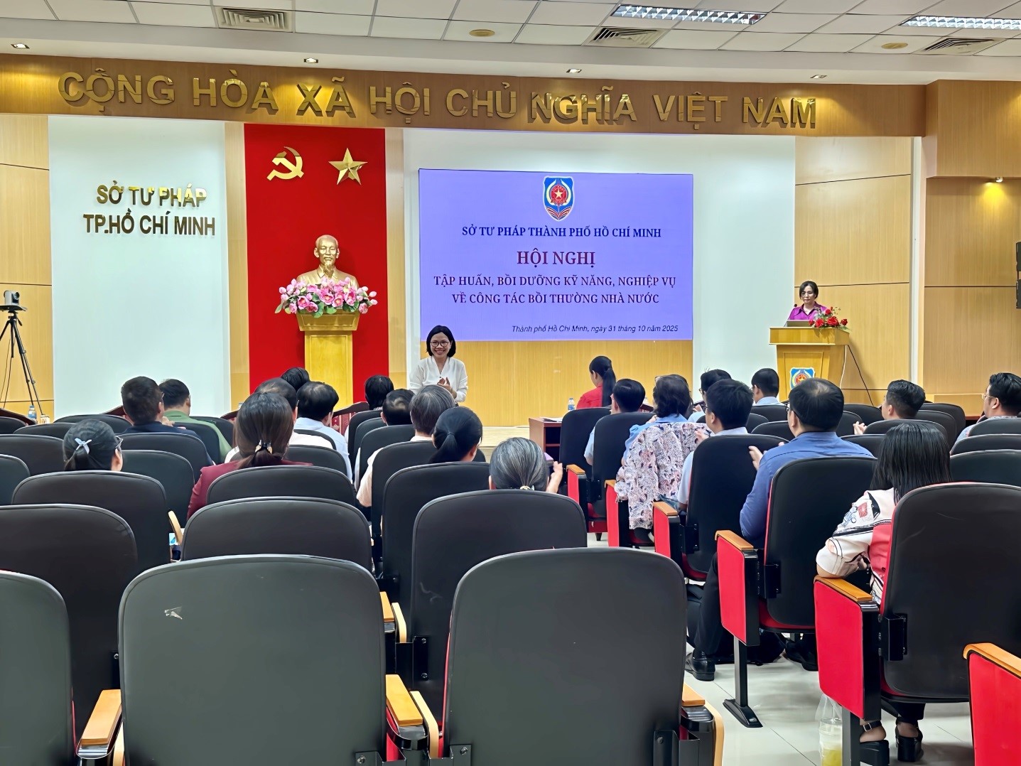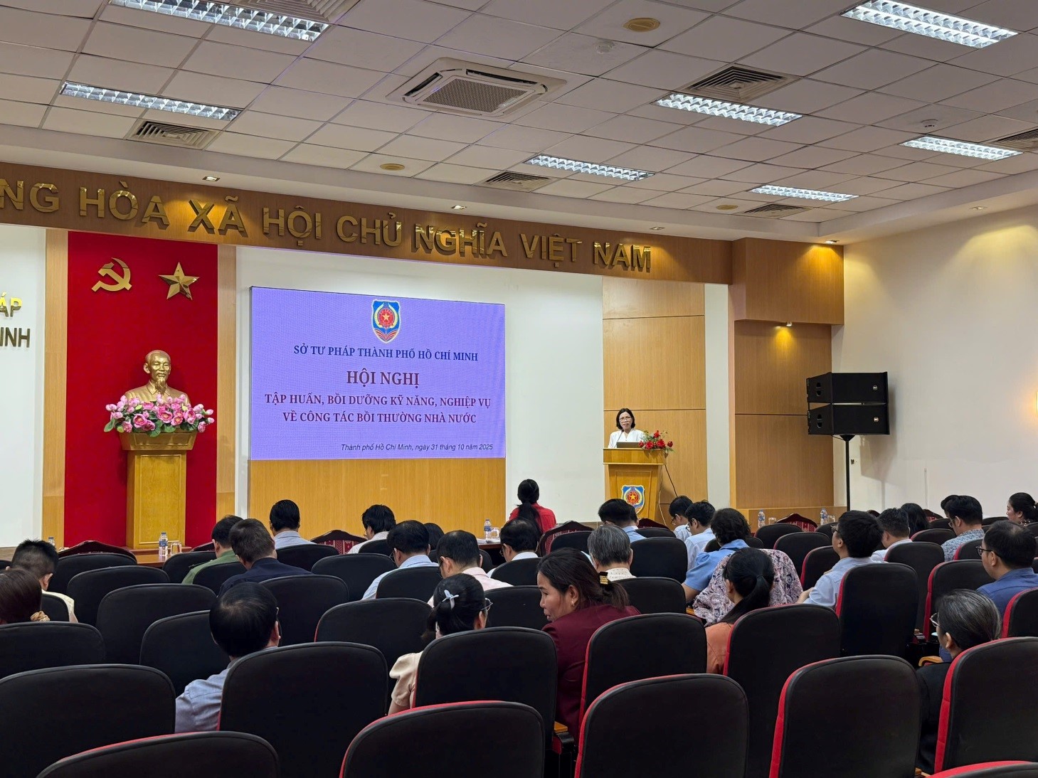 Ngày 31/10/2025, Sở Tư pháp đã tổ chức Hội nghị tập huấn, bồi dưỡng kỹ năng, nghiệp vụ về công tác bồi thường nhà nước với 02 hình thức, trực tiếp tại Sở Tư pháp và trực tuyến tại các điểm cầu Ủy ban nhân dân phường, xã, đặc khu trên địa bàn Thành phố Hồ Chí Minh, nhằm trang bị, cập nhật cho đội ngũ cán bộ, công chức nắm bắt đầy đủ quy định về trách nhiệm, quyền hạn của các cơ quan, nâng cao kỹ năng, nghiệp vụ giải quyết yêu cầu bồi thường nhà nước theo quy định của Luật Trách nhiệm bồi thường của nhà nước và các văn bản hướng dẫn thi hành; góp phần nâng cao hiệu quả thi hành công vụ, nhiệm vụ trên địa bàn Thành phố Hồ Chí Minh.
