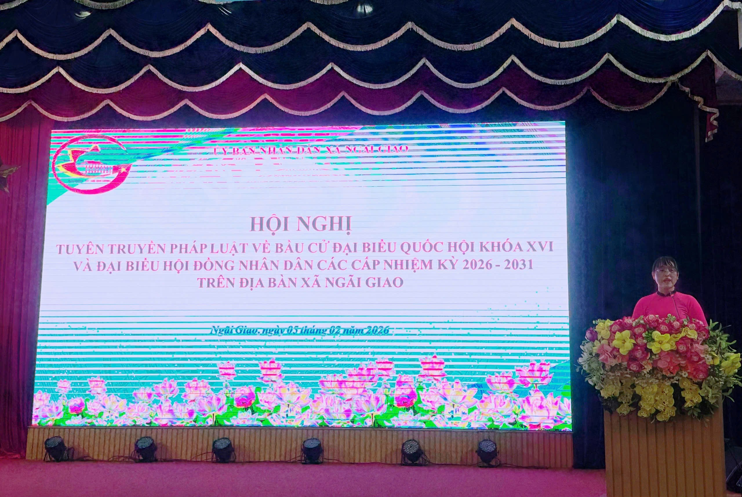 HỘI NGHỊ TUYÊN TRUYỀN, PHỔ BIẾN PHÁP LUẬT VỀ BẦU CỬ ĐẠI BIỂU QUỐC HỘI KHÓA XVI VÀ BẦU CỬ ĐẠI BIỂU HỘI ĐỒNG NHÂN DÂN CÁC CẤP NHIỆM KỲ 2026-2031 TRÊN ĐỊA BÀN XÃ NGÃI GIAO