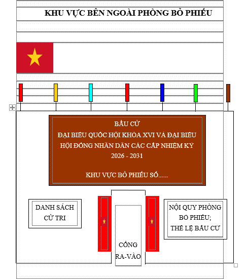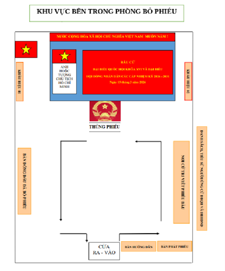 - Nội quy phòng bỏ phiếu thực hiện theo quy định tại Điều 4 Nghị quyết số 40/NQ-HĐBCQG ngày 29 tháng 9 năm 2025 của Hội đồng bầu cử quốc gia quy định mẫu hồ sơ ứng cử, mẫu phiếu bầu cử, nội quy phòng bỏ phiếu và các loại mẫu văn bản sử dụng trong công tác bầu cử đại biểu Quốc hội khóa XVI và đại biểu Hội đồng nhân dân các cấp nhiệm kỳ 2026 - 2031.