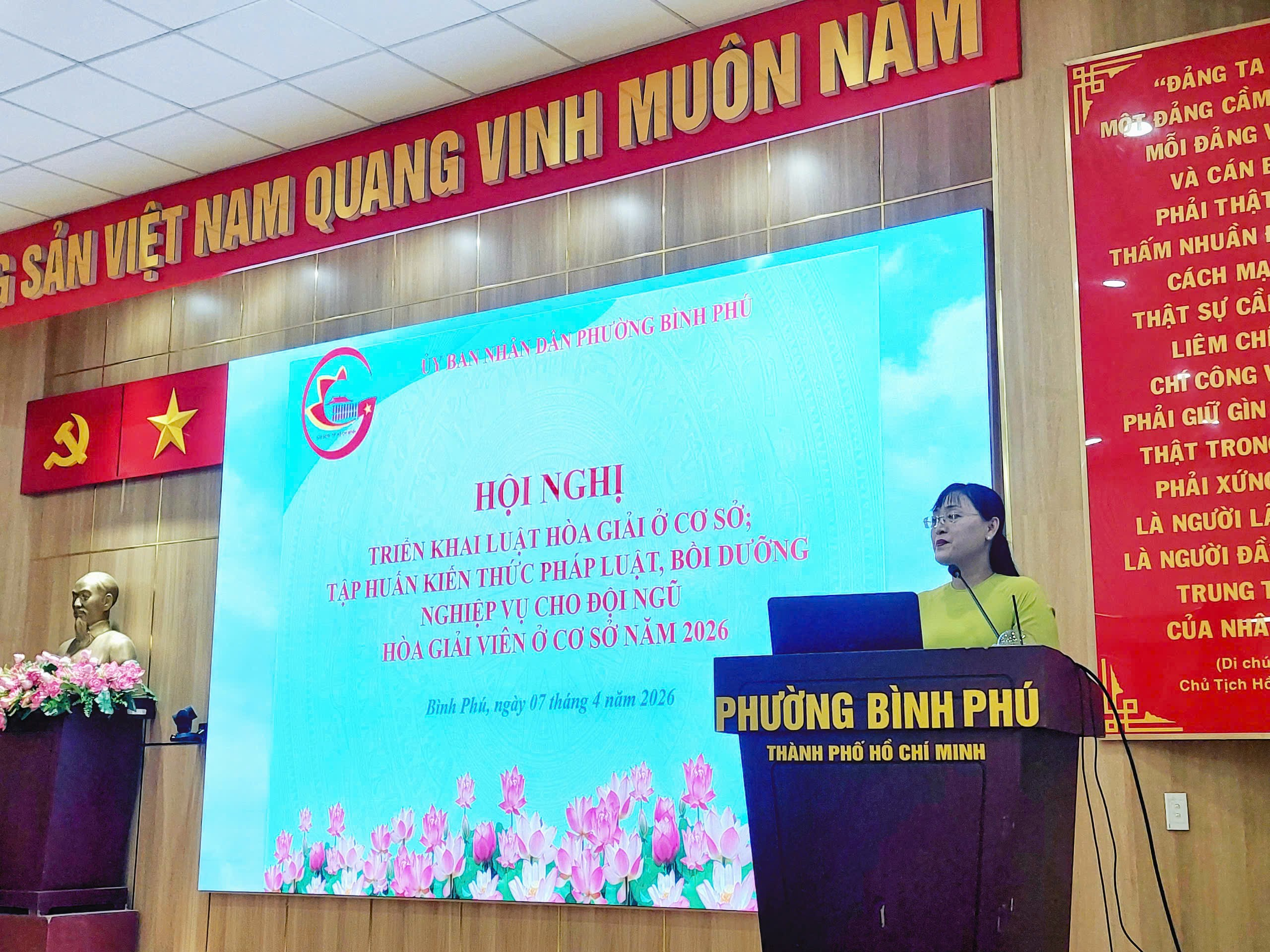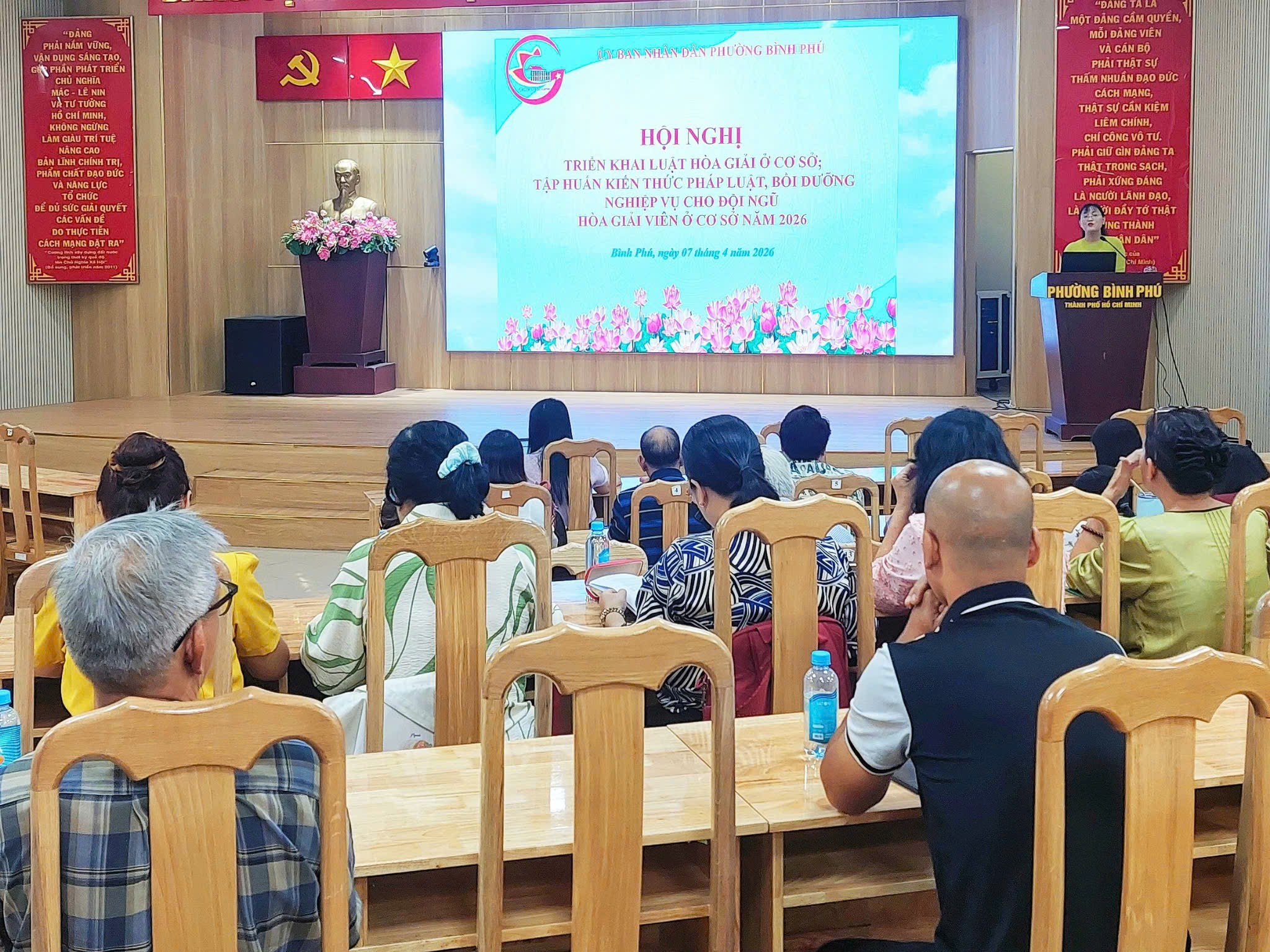 Thực hiện Kế hoạch số 63/KH-UBND ngày 18 tháng 3 năm 2026 của Ủy ban nhân dân phường về Kế hoạch tập huấn Luật Hòa giải ở cơ sở và nghiệp vụ hòa giải ở cơ sở trên địa bàn Phường Bình Phú năm 2026.
